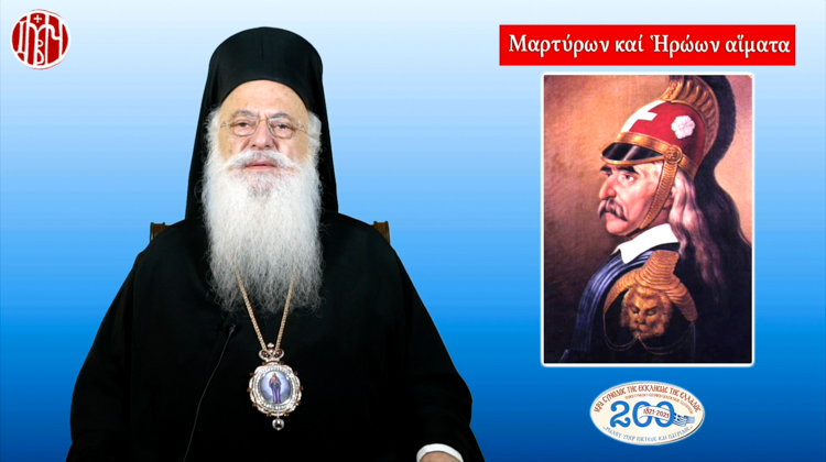 Πρόκειται για την δέκατη έκτη ομιλία του Σεβασμιωτάτου Μητροπολίτου κ. Παντελεήμονος στη σειρά των διαδικτυακών ομιλιών με τον γενικό τίτλο Μαρτύρων και ηρώων αίματα, που μεταδίδει η Ιερά μας Μητρόπολη κάθε Πέμπτη στις 7:00 μ.μ. κατά την οποία αναπτύσσονται ιστορικά και αγιολογικά θέματα που σχετίζονται με την περίοδο της Τουρκοκρατίας και την Ελληνική Επανάσταση, την συνεισφορά της Εκκλησίας και του Ιερού Κλήρου στους αγώνες του Έθνους καθώς και με γεγονότα και πρόσωπα που διαδραμάτισαν σημαντικό ρόλο στην τοπική μας Εκκλησία.