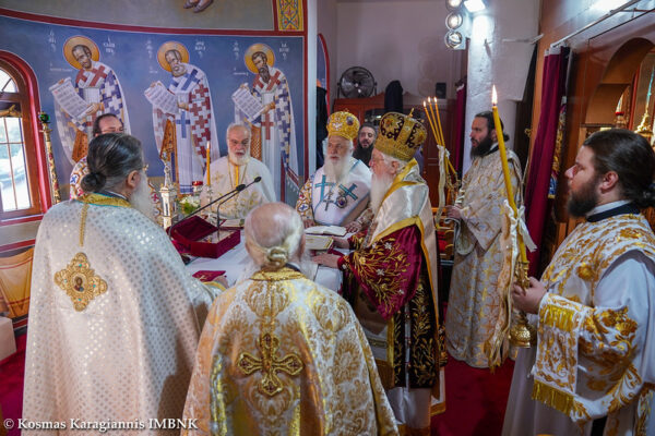 Στήν πανήγυρη τή φετινή τοῦ ἁγίου μας, τοῦ ἁγίου Νεκταρίου, ἔχουμε τήν τιμή καί τήν εὐλογία νά ἔχουμε συλλειτουργοῦντα, καί χθές χοροστατήσαντα καί ὁμιλήσαντα, τόν Σεβασμιώτατο Μητροπολίτη Λαοδικείας, ἀπό τό κλίμα τοῦ Οἰκουμενικοῦ μας Πατριαρχείου, ἕναν λόγιο ἱεράρχη, ἕναν ἱεράρχη ὁ ὁποῖος δοκιμάσθηκε καί διακόνησε τήν Ἐκκλησία σέ πολλές περιοχές, πρωτίστως στή Μεγάλη Βρετανία, ἐκεῖ ὅπου διακονήσαμε μαζί τόν ἀπόδημο Ἑλληνισμό, καί μετέπειτα στήν Ἀθήνα, ὅπου προσέφερε ἕνα τεράστιο ἔργο ἀγάπης καί φιλανθρωπίας πρός τόν ἄνθρωπο. Ἕνας λόγιος κληρικός, ὁ ὁποῖος μετεκπαιδεύθη στή Μεγάλη Βρετανία καί ἀπέκτησε διδακτορικά· βέβαια δέν ἔχουν σημασία ὅλα αὐτά τά χαρτιά, σημασία ἔχει ὅμως ὅτι εἶναι ἕνας κληρικός μέ ἁγιότητα βίου, ἕνας κληρικός, ἕνας ἐπίσκοπος, ὁ ὁποῖος, θά ἔλεγα, βαδίζει στά χνάρια τοῦ ἁγίου Νεκταρίου, μέ ἀγάπη, μέ ταπείνωση, μέ προσφορά καί στήν Ἐκκλησία καί στόν ἄνθρωπο. Ἐγώ τόν εὐχαριστῶ, γιατί αὐτές τίς ἡμέρες λάμπρυνε μέ τήν παρουσία του τίς ἐνορίες τῆς Μητροπόλεώς μας, τοῦ Ἀρχαγγέλου στά Ἀσώματα, ἀλλά καί χθές καί σήμερα ἐδῶ στόν ναό τοῦ ἁγίου Νεκταρίου.