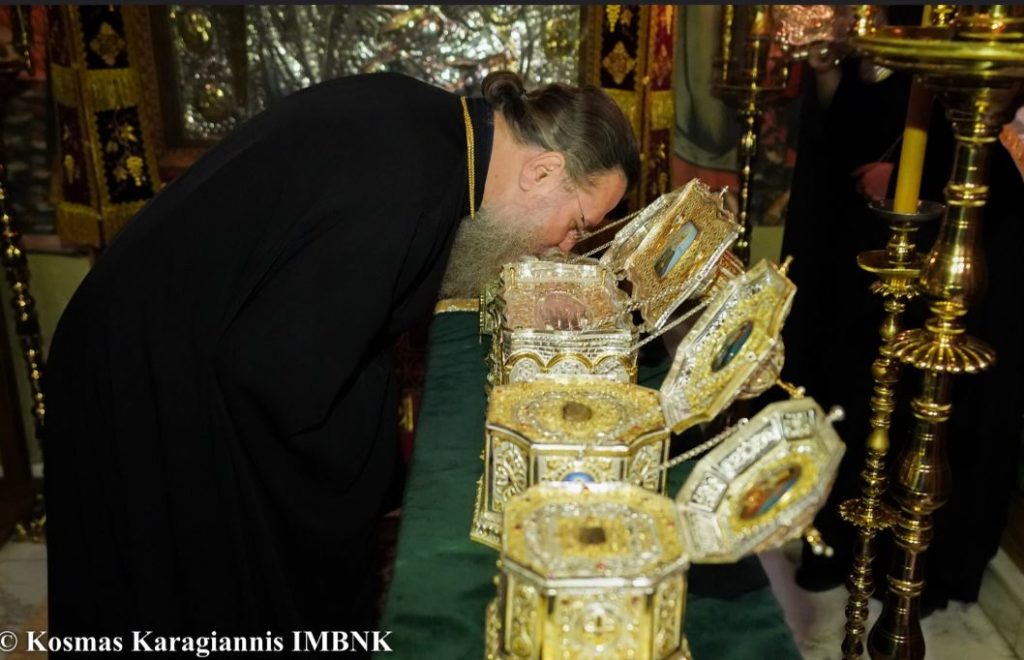 Από την πλευρά του, ο Σεβασμιώτατος Μητροπολίτης Καλαβρύτων και Αιγιαλείας κ. Ιερώνυμος, εκ μέρους και του Θεοφιλεστάτου Επισκόπου Ευκαρπίας κ. Ιεροθέου, εξέφρασε ευχαριστίες για την θερμή υποδοχή και ευχήθηκε οι Άγιοι Πάντες να προστατεύουν και να ενισχύουν πνευματικά τις αδελφές και να ευλογούν τους ευλαβείς προσκυνητές.