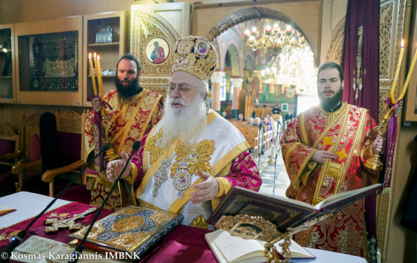 “Να μετέχουμε του Σώματος και του Αίματός του, έχοντας φροντίσει προηγουμένως να καθαρίσει την ψυχή και το σώμα μας με τη μετάνοια και το μυστήριο της ιεράς Εξομολογήσεως. Να μετέχουμε με συναίσθηση της τιμής που μας κάνει ο Χριστός αλλά και της δικής μας αναξιότητος στο ιερό μυστήριο της θείας Μεταλήψεως του αχράντου Σώματος και του τιμίου αίματος του Κυρίου μας. Και να αγωνιζόμεθα να διατηρούμε την ανάμνηση της ζωής και της θυσίας του Χριστού διαρκώς μέσα στην ψυχή μας, ώστε να μιμούμεθα το παράδειγμα της ταπεινοφροσύνης και της αγάπης του και να προσπαθούμε να εναρμονίζουμε τη ζωή μας με τη δική του, ώστε να είμεθα πάντοτε ενωμένοι μαζί του και να αξιωθούμε και της αιωνίου βασιλείας του”, είπε μεταξύ άλλων στην ομιλία του ο Σεβασμιώτατος.