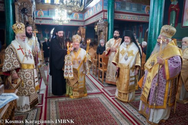 Στο Πολυαρχιερατικό Συλλείτουργο που προηγήθηκε προεξήρχε ο Σεβασμιώτατος Μητροπολίτης Βρυούλων κ. Παντελεήμων και συμμετείχαν ο Σεβασμιώτατος Μητροπολίτης Βεροίας, Ναούσης και Καμπανίας κ. Παντελεήμων, ο οποίος κήρυξε τον θείο λόγο, ο Θεοφιλέστατος Επίσκοπος Αμορίου κ. Νικηφόρος και ο οικείος Ποιμενάρχης, Σεβασμιώτατος Μητροπολίτης Λαγκαδά, Λητής και Ρεντίνης κ. Πλάτων.