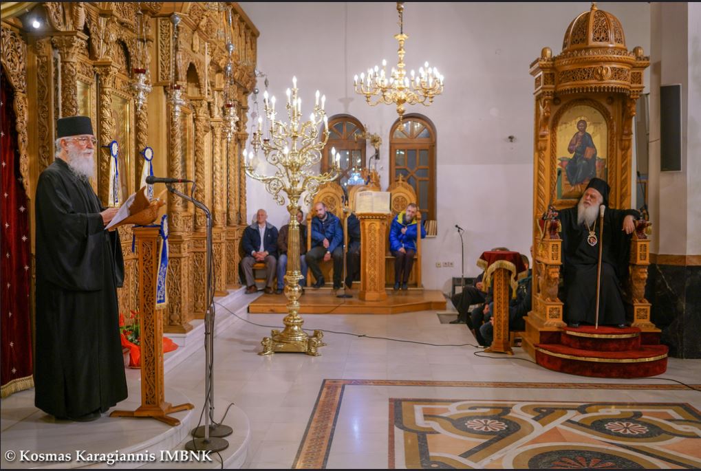 Τόν καλωσορίζουμε μέ πολλή ἀγάπη, μέ σεβασμό καί εὐγνωμοσύνη, καί τόν εὐχαριστοῦμε γιά τόν κόπο τόν ὁποῖο κάνει ἰδιαίτερα τήν περίοδο αὐτή τῆς Ἁγίας καί Μεγάλης Τεσσαρακοστῆς, ἐγκαταλείποντας τή Σκήτη του, τό Ἅγιον Ὄρος, τά πνευματικά του παιδιά, καί εὑρισκόμενος ἐδῶ γιά νά μᾶς μεταφέρει αὐτή τήν ἐμπειρία τῆς νηστείας. Τόν παρακαλοῦμε νά λάβει τόν λόγο.