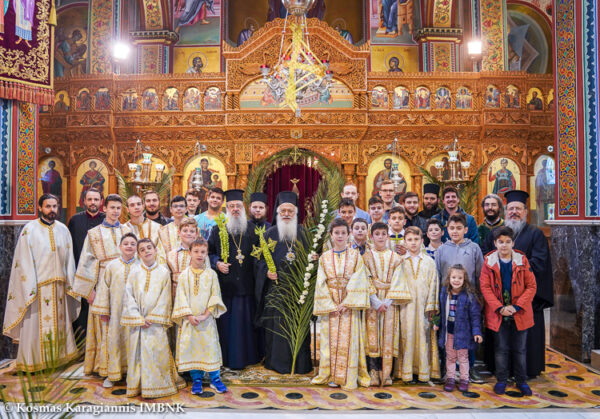Την Κυριακή των Βαΐων 21 Απριλίου το πρωί ο Σεβασμιώτατος Μητροπολίτης Βεροίας, Ναούσης και Καμπανίας κ. Παντελεήμων λειτούργησε και κήρυξε το θείο λόγο στον Ιερό Ναό Αγίων Αναργύρων Βεροίας. Στο τέλος της Θείας Λειτουργίας έγινε, εντός του Ιερού Ναού, λιτάνευση της εικόνας της Βαϊοφόρου και ευλογήθηκαν τα βάϊα. Επίσης ο Σεβασμιώτατος, όπως κάθε χρόνο τέτοια ημέρα βγήκε αναμνηστική φωτογραφία με τους ιερόπαιδες της ενορίας. “Ὁ Χριστός γνωρίζει καλά πόσο ὕπουλη καί ἐπικίνδυνη εἶναι ἡ ὑποκρισία, γι᾽ αὐτό καί πορευόμενος πρός τό Πάθος του θά τήν στηλιτεύσει ἐπανειλημμένα, ὅπως θά ἀκούσουμε τίς ἑπόμενες ἡμέρες, ἀπευθυνόμενος πρός τούς ὑποκριτές γραμματεῖς καί φαρισαίους καί περιγράφοντας τήν ὑποκρισία τους μέ τά πιό μελανά χρώματα, προκειμένου νά τούς παρακινήσει νά κατανοήσουν τήν ἀπάτη της, ἀλλά καί γιά νά δείξει καί σέ μᾶς πόσο ἐπικίνδυνο εἶναι νά ἐμπλακοῦμε στήν παγίδα της. Γιατί ἡ ὑποκρισία εἶναι ἡ χειρότερη παγίδα τοῦ διαβόλου, στήν ὁποία ὅποιος πέφτει δέν μπορεῖ νά φθάσει στή μετάνοια” ανέφερε μεταξύ άλλων ο Σεβασμιώτατος στο κήρυγμά του.
