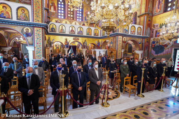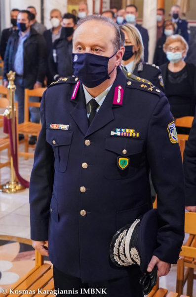 Συγχρόνως ὅμως τιμοῦμε μαζί μέ τόν προστάτη σας καί ὅλους ἐσᾶς γιά τό ἔργο πού προσφέρετε στήν κοινωνία καί στήν πατρίδα μας, γιά τό ἔργο πού προσφέρετε, ὥστε ὁ κάθε πολίτης αὐτῆς τῆς χώρας νά αἰσθάνεται ἀσφαλής, καί μέσα σέ αὐτό τό κλίμα τῆς ἀσφαλείας νά μπορεῖ νά ἐργάζεται καί νά δημιουργεῖ.