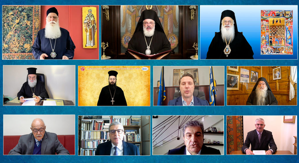 Στην αρχή χαιρετισμό απηύθυναν ο εκπρόσωπος του Μακαριωτάτου Αρχιεπισκόπου Αθηνών και πάσης Ελλάδος κ.κ. Ιερωνύμου και της Ιεράς Συνόδου της Εκκλησίας της Ελλάδος, Σεβασμιώτατος Μητροπολίτης Διδυμοτείχου, Ορεστιάδος και Σουφλίου κ. Δαμασκηνός, ο Σεβασμιώτατος Μητροπολίτης Δημητριάδος και Αλμυρού κ. Ιγνάτιος, πρόεδρος της Ειδικής Συνοδικής Επιτροπής Πολιτιστικής Ταυτότητος της Ιεράς Συνόδου της Εκκλησίας της Ελλάδος, ο Δήμαρχος της Ηρωϊκής πόλεως Ναούσης κ. Νικόλαος Καρανικόλας και ο Σεβασμιώτατος Μητροπολίτης Βεροίας, Ναούσης και Καμπανίας κ. Παντελεήμων, ο οποίος κήρυξε και την έναρξη των εργασιών του διαδικτυακού συνεδρίου.