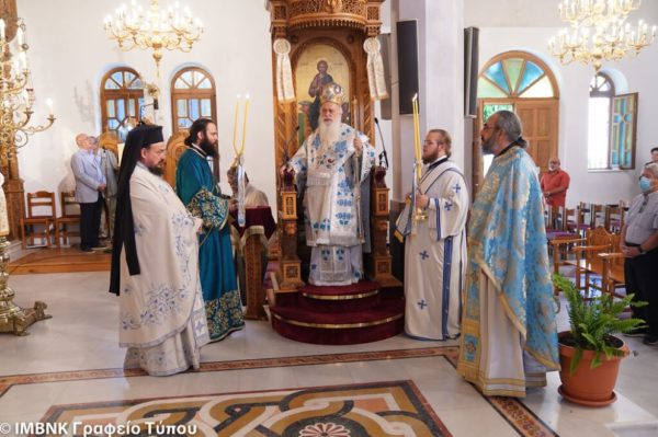 Στο τέλος της Θείας Λειτουργίας ο εκπρόσωπος της Α.Θ.Π. του Οικουμενικού Πατριάρχου κ. κ. Βαρθολομαίου, Αρχιερατικός Επίτροπος Μελίκης Αρχιμ. Σωφρόνιος Φάκας μετέφερε τις ευχές της Σεπτής Κορυφής της Ορθοδοξίας.
