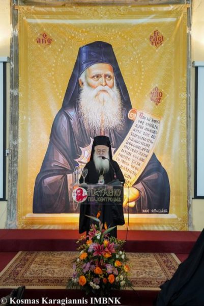 «Αυτός ο θεόπνευστος υμνογράφος, ο γεμάτος αγάπη για κάθε άνθρωπο ασκητής, ο φίλος των αγίων και του Θεού, ο θεόπτης, ο όσιος Γεράσιμος ο Υμνογράφος, ο Μικραγιαννανίτης, είναι ο νέος άγιος της Εκκλησίας», είπε σε άλλο σημείο της ομιλίας του ο Σεβασμιώτατος.