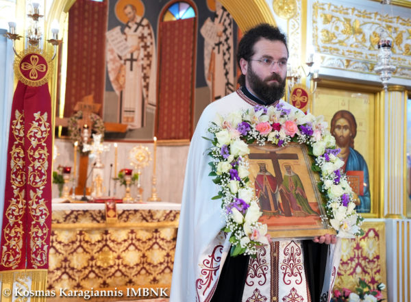 Ο Σεβασμιώτατος στην ομιλία του ανέφερε μεταξύ άλλων: «Χαίροις, ὁ τόν Παῦλον ζηλώσας, καί τόν Σταυρόν τοῦ Χριστοῦ ἀράμενος», ψάλλει σήμερα ἡ Ἐκκλησία μας τιμώντας τούς ἁγίους ἐνδόξους, θεοστέπτους βασιλεῖς καί ἰσαποστόλους Κωνσταντίνο καί Ἑλένη καί ἀναγνωρίζοντας στά πρόσωπά τους τά σκεύη τῆς ἐκλογῆς τοῦ Θεοῦ γιά νά ἀπαλλάξει τήν Ἐκκλησία του ἀπό τούς διωγμούς.