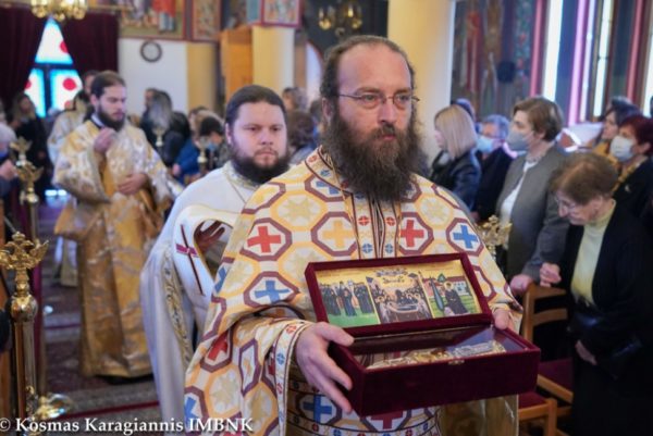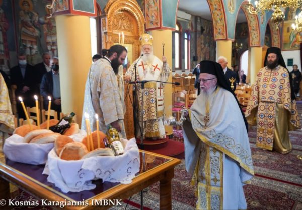 “Η Εκκλησία μας τιμά τους αγίους της, τους τιμά προβάλλοντάς τους ως πρότυπα ζωής για όλους τους πιστούς. Τους τιμά για να μας υπενθυμίσει τη ζωή τους, τους αγώνες τους, τους κόπους τους, τις προσπάθειές τους, τις δυσκολίες και τις αντιξοότητες τις οποίες και εκείνοι αντιμετώπισαν, όπως αντιμετωπίζουμε και εμείς”, είπε μεταξύ άλλων ο Σεβασμιώτατος κατά την ομιλία του.