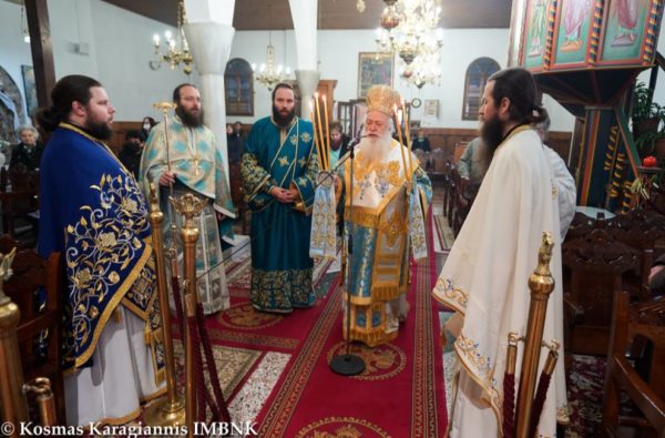 Το πρωί της Πέμπτης, 5 Ιανουαρίου, παραμονή της Δεσποτικής Εορτής της Βαπτίσεως του Κυρίου, ο Σεβασμιώτατος Μητροπολίτης Βεροίας, Ναούσης και Καμπανίας κ. Παντελεήμων λειτούργησε και κήρυξε τον θείο λόγο στον Ιερό Ναό Αγίου Γεωργίου Βεροίας και στο τέλος τέλεσε την ακολουθία του Μεγάλου Αγιασμού.