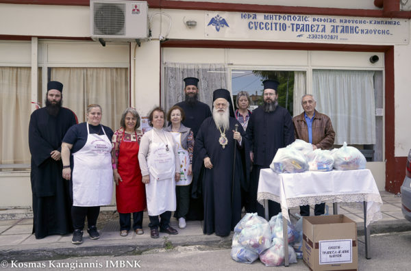 Αντίστοιχα δέματα, μοίρασε ο Ποιμενάρχης κ. Παντελεήμων το μεσημέρι της Τρίτης, 30ηςΑπριλίου, στο συσσίτιο της ηρωικής πόλεως της Ναούσης μαζί με τον Υπεύθυνο του Συσσιτίου Πρωτοπρ. Νικόλαο Παπαθεοδώρου και τις εθελόντριες.