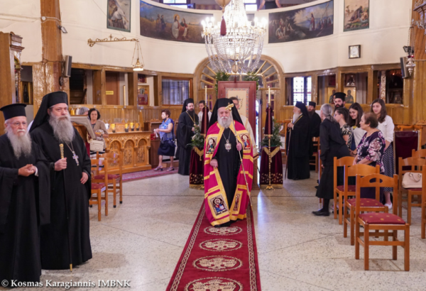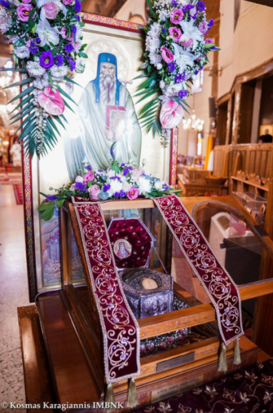 Κατά την διάρκεια του Όρθρου και της Θείας Λειτουργίας τέθηκε σε προσκύνηση η Τιμία Κάρα του Οσίου Θεοφάνους, η οποία φυλάσσεται στον Ιερό Ναό.