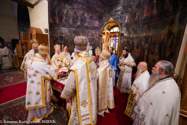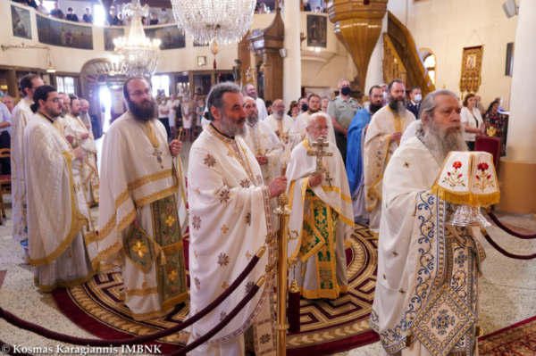Την Τετάρτη 19 Αυγούστου το πρωί, ημέρα κατά την οποία η ηρωική πόλη της Ναούσης εορτάζει τον πολιούχο της Όσιο Θεοφάνη τον θαυματουργό, τελέστηκε στον Ιερό Ναό Κοιμήσεως της Θεοτόκου Ναούσης λαμπρό Πολυαρχιερατικό Συλλείτουργο.