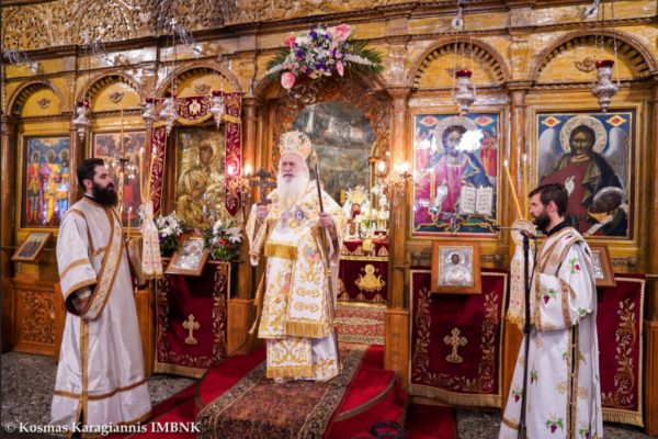 Κατά την διάρκεια του Όρθρου και της Θείας Λειτουργίας τέθηκε σε προσκύνηση η Τιμία Κάρα του Οσίου Θεοφάνους, η οποία φυλάσσεται στον Ιερό Ναό.