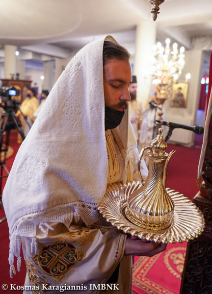 Στην Ακολουθία έψαλλε Βυζαντινός Χορός υπό την διεύθυνση του Πρωτοψάλτου κ. Ιωάννου Χασανίδη, ενώ παρευρέθηκε ο Υφυπουργός Οικονομικών κ. Απόστολος Βεσυρόπουλος και πλήθος ευσεβών πιστών, τηρουμένων των προβλεπόμενων μέτρων για την προστασία της δημόσιας υγείας.