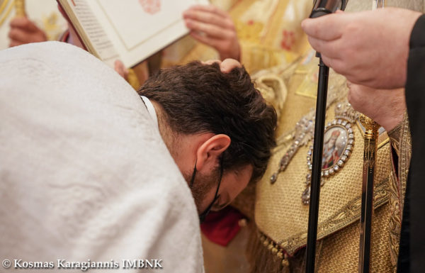 Τά τελευταῖα χρόνια εἶχες τήν εὐ­καιρία νά διακονήσεις τήν Ἐκ­κλη­σία τοῦ Χριστοῦ ὡς λαϊκός πλη­σίον τοῦ θείου σου, τοῦ π. Νι­κο­λάου, καί νά ἐξοικειωθεῖς μέ τό ἔργο τῆς Ἐκ­κλησίας μας ἐκτός Ἑλ­λάδος, ἐκεῖ ὅπου θά διακονεῖς πλέον ὡς κλη­ρικός. Ἡ διακονία αὐτή σοῦ δί­δα­ξε πολλά καί σέ προετοίμασε κατάλ­ληλα γιά τήν ἀποστολή πού ἀπό σή­μερα θά ἀνα­λάβεις μέ τή χάρη τοῦ Θεοῦ, ὥστε νά κατα­στεῖς σκεῦ­ος εὔχρηστον εἰς διακο­νίαν τοῦ Χριστοῦ καί νά φανεῖς ἀντάξιος τῆς δωρεᾶς τοῦ Θεοῦ πού θά λάβεις σέ λίγο.