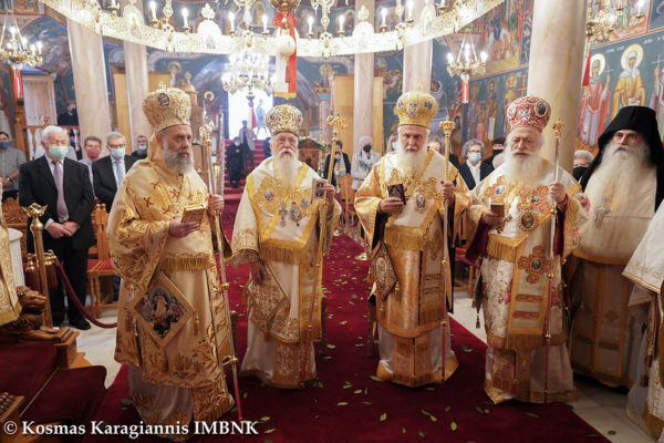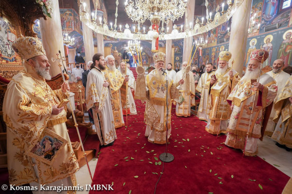 Αὐτή τήν ἡμέρα ἔχουμε τή χαρά καί τήν τιμή νά ἑορτάζουμε φέτος μέ πολυαρχιερατική θεία Λειτουργία, προεξάρχοντος τοῦ διακεκριμένου καί λογίου ἱεράρχου τοῦ Οἰκουμενικοῦ μας Πατριαρχείου, Σεβασμιωτάτου Μητροπολίτου Λαοδικείας κ. Θεοδωρήτου, ἐκπροσώπου τῆς Αὐτοῦ Θειοτάτης Παναγιότητος, τοῦ Οἰκουμενικοῦ μας Πατριάρχου κ.κ. Βαρθολομαίου, καί προσφιλοῦς ἐν Χριστῷ ἀδελφοῦ ἀπό τά παιδικά μας χρόνια, συμπαραστατουμένου ὑπό τῶν Σεβασμιωτάτων Ἁγίων Ἀρχιερέων καί ἐπίσης προσφιλῶν, σεβασμίων καί ἀγαπητῶν ἀδελφῶν, τοῦ Σεβασμιωτάτου Μητροπολίτου Θεσσαλιώτιδος καί Φαναριοφερσάλων κ. Τιμοθέου, ὁ ὁποῖος ἐκπροσωπεῖ καί τήν Ἱερά Σύνοδο, καί τοῦ Σεβασμιωτάτου Μητροπολίτου Λήμνου καί Ἁγίου Εὐστρατίου κ. Ἱεροθέου, οἱ ὁποῖοι λαμπρύνουν μέ τήν παρουσία τους καί τή συμμετοχή τους τήν πανήγυρη τῆς Ἱερᾶς μας Μονῆς καί τή διακοσιοστή ἐπέτειο τοῦ ὁλοκαυτώματός της. Τούς εὐχαριστῶ ὅλους ἀπό καρδίας καί ἐν εὐγνωμοσύνῃ πολλῇ.