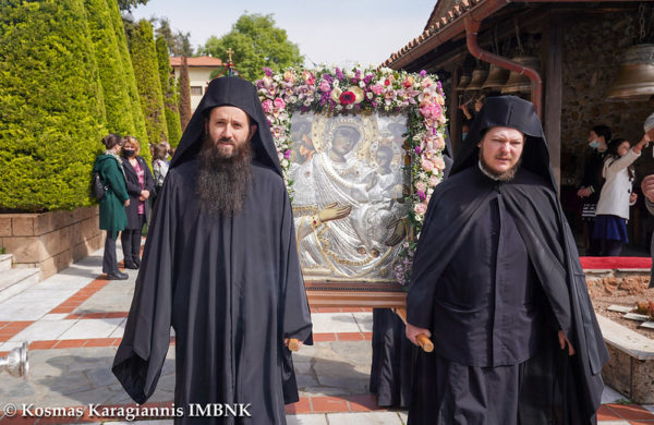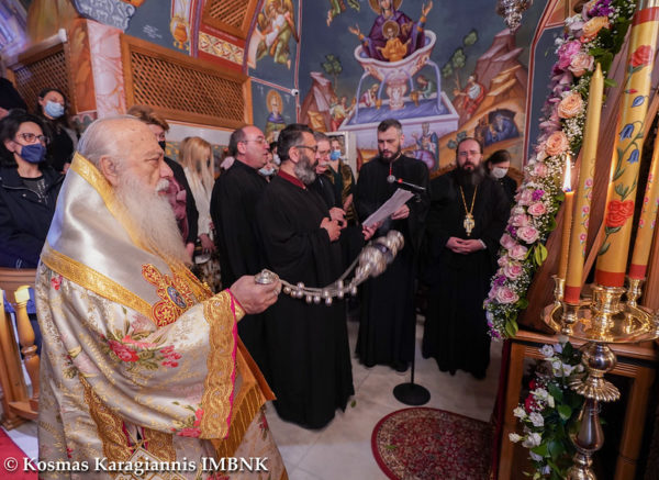 Εὐχαριστῶ ἐπίσης καί εἶμαι ὑπόχρεος στήν ἀγάπη τῶν ἁγίων καθηγουμένων καί τῶν πατέρων, οἱ ὁποῖοι προσεκόμισαν τά λείψανα τῶν ἁγίων: τόν π. Μεθόδιο, τοῦ ἁγίου Σεραφείμ Φαναρίου καί Νεοχωρίου, ἀπό τήν Ἱερά Μητρόπολη Θεσσαλιώτιδος, τόν π. Διονύσιο, ἀπό τήν Ἱερά Ἀρχιεπισκοπή Ἀθηνῶν, πού ἔφερε τό λείψανο τῆς ἁγίας Φιλοθέης τῆς Ἀθηναίας, μέ τήν εὐλογία τοῦ Μακαριωτάτου Ἀρχιεπισκόπου Ἀθηνῶν, καί τόν π. Δαμασκηνό, πού ἔφερε τήν κάρα τῆς ἁγίας Ἑλένης τῆς Σινωπίτιδος, καθώς καί τόν ἅγιο καθηγούμενο τῆς Ἱερᾶς Μονῆς Ἁγίας Λάβρας Καλαβρύτων, ὁ ὁποῖος μᾶς ἔφερε τό λάβαρο τῆς Ἐπαναστάσεως τοῦ 1821.