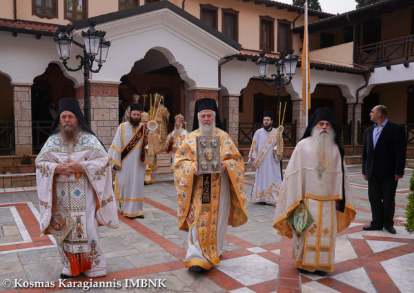 Στο Καθολικό της Ιεράς Μονής τελέστηκε ο Όρθρος της εορτής και Πολυαρχιερατικό Συλλείτουργο, στο οποίο προεξήρχε και κήρυξε τον θείο λόγο ο Σεβασμιώτατος Μητροπολίτης Λαοδικείας κ. Θεοδώρητος, Διευθυντής του Γραφείου εκπροσωπήσεως του Οικουμενικού Πατριαρχείου στην Αθήνα. Στο Πολυαρχιερατικό Συλλείτουργο συμμετείχαν και οι Σεβασμιώτατοι Μητροπολίτες Θεσσαλιώτιδος και Φαναριοφερσάλων κ. Τιμόθεος, Λήμνου και Αγίου Ευστρατίου κ. Ιερόθεος και ο Σεβασμιώτατος Μητροπολίτης Βεροίας, Ναούσης και Καμπανίας κ. Παντελεήμων.