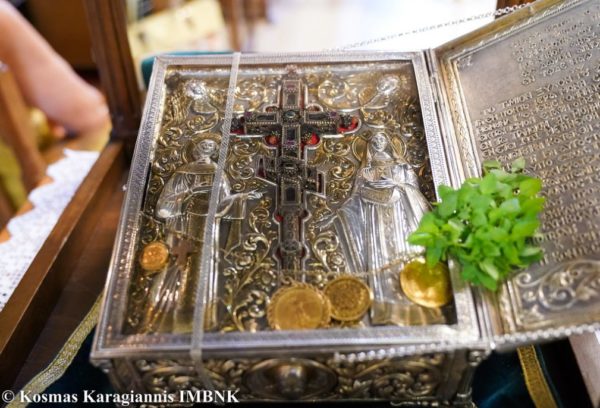 Γι᾽ αὐτό καί ἡ Ἐκκλησία μας, θέλοντας νά μᾶς ἐνισχύσει στόν πνευματικό αὐτό πόλεμο, προβάλλει τόν Σταυρό τοῦ Κυρίου μας. Γι᾽ αὐτό καί ἐμεῖς σήμερα, ἡμέρα κατά τήν ὁποία στήν Κωνσταντινούπολη λιτάνευαν τόν τίμιο Σταυρό σέ ὅλη τήν πόλη, μεταφέραμε τόν τίμιο Σταυρό, ὁ ὁποῖος φυλάσσεται στό ἱερό Προσκύνημα τῆς Παναγίας Σουμελᾶ καί περιέχει τμῆμα τοῦ Τιμίου Ξύλου τοῦ ζωοποιοῦ Σταυροῦ τοῦ Κυρίου μας, γιά νά τόν προσκυνήσουμε καί νά λάβουμε τήν εὐλογία καί τή χάρη του.