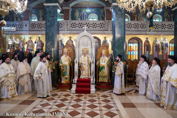 Καί εὔχομαι νά νικήσουμε σ᾽ αὐτόν τόν πνευματικό ἀγώνα πού ἀρχίζουμε ἀπό σήμερα, μέ τίς πρεσβεῖες τῶν ἑορταζομένων ἁγίων Μακκαβαίων, τῆς ἁγίας Σολομονῆς, τῆς μητέρας τους, τοῦ ἁγίου Ἐλεαζάρου καί τοῦ πολιούχου μας ἁγίου Ἀντωνίου, ἀλλά καί τίς εὐχές τῶν Σεβασμιωτάτων Ἁγίων Ἀρχιερέων, τοῦ Σεβασμιωτάτου Μητροπολίτου Βρυούλων κ. Παντελεήμονος, πολυσεβάστου ἱεράρχου τοῦ Οἰκουμενικοῦ μας Πατριαρχείου, ὁ ὁποῖος προεξῆρχε τῆς σημερινῆς θείας Λειτουργίας, ἀλλά καί τοῦ ἐπίσης σεβαστοῦ καί ἀγαπητοῦ Ἁγίου Τριπόλεως, κ. Θεοφυλάκτου, σεπτοῦ ἱεράρχου τοῦ Πατριαρχείου Ἀλεξανδρείας, πρός τούς ὁποίους ἐκφράζω καί πάλιν τήν εὐγνωμοσύνη καί τίς εὐχαριστίες μου, γιατί μέ τή σεπτή παρουσία τους λάμπρυναν τήν πανήγυρή μας.
