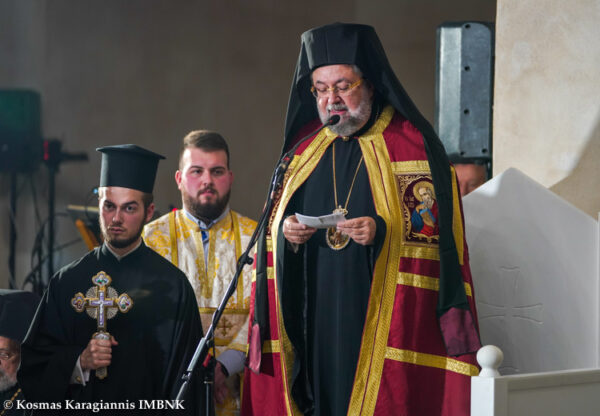 Στον Εσπερινό χοροστάτησε ο Σεβασμιώτατος Μητροπολίτης Γέρων Πριγκηποννήσων κ. Δημήτριος, ενώ έλαβαν μέρος οι Σεβασμιώτατοι Μητροπολίτες Βρυούλων κ. Παντελεήμων, Μιλήτου κ. Απόστολος, Κλούζ κ. Ανδρέας (Εκκλησία της Ρουμανίας), Φιλαδελφείας κ. Μελίτων, Διδυμοτείχου, Ορεστιάδος και Σουφλίου κ. Δαμασκηνός, Λαοδικείας κ. Θεοδώρητος, Σιδηροκάστρου κ. Μακάριος, Ζιχνών κ. Ιερόθεος, Σερβίων και Κοζάνης κ. Παύλος, Κορίνθου κ. Διονύσιος, Κινσάσας κ. Νικηφόρος (Πατριαρχείο Αλεξανδρείας), Ιερισσού, Αγίου Όρους και Αρδαμερίου κ. Θεόκλητος, Μαρωνείας και Κομοτηνής κ. Παντελεήμων, Τρίκκης και Σταγών κ. Χρυσόστομος, Σισανίου και Σιατίστης κ. Αθανάσιος, οι Θεοφιλέστατοι Επίσκοποι Θερμών κ. Δημήτριος και Πραχοβεάνου κ. Τιμόθεος (Εκκλησία της Ρουμανίας) και ο Σεβ. Μητροπολίτης μας Βεροίας κ. Παντελεήμων.