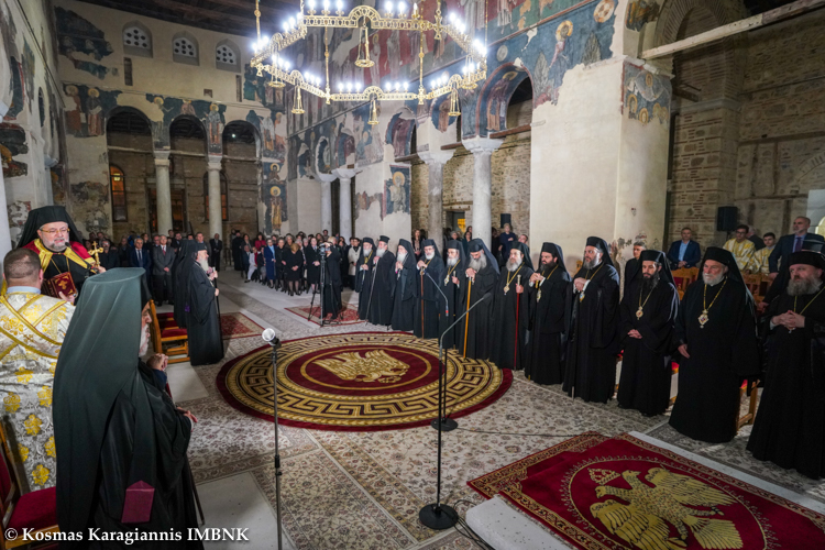 Στον Εσπερινό χοροστάτησε ο Σεβασμιώτατος Μητροπολίτης Γέρων Πριγκηποννήσων κ. Δημήτριος, ενώ έλαβαν μέρος οι Σεβασμιώτατοι Μητροπολίτες Βρυούλων κ. Παντελεήμων, Μιλήτου κ. Απόστολος, Κλούζ κ. Ανδρέας (Εκκλησία της Ρουμανίας), Φιλαδελφείας κ. Μελίτων, Διδυμοτείχου, Ορεστιάδος και Σουφλίου κ. Δαμασκηνός, Λαοδικείας κ. Θεοδώρητος, Σιδηροκάστρου κ. Μακάριος, Ζιχνών κ. Ιερόθεος, Σερβίων και Κοζάνης κ. Παύλος, Κορίνθου κ. Διονύσιος, Κινσάσας κ. Νικηφόρος (Πατριαρχείο Αλεξανδρείας), Ιερισσού, Αγίου Όρους και Αρδαμερίου κ. Θεόκλητος, Μαρωνείας και Κομοτηνής κ. Παντελεήμων, Τρίκκης και Σταγών κ. Χρυσόστομος, Σισανίου και Σιατίστης κ. Αθανάσιος, οι Θεοφιλέστατοι Επίσκοποι Θερμών κ. Δημήτριος και Πραχοβεάνου κ. Τιμόθεος (Εκκλησία της Ρουμανίας) και ο Σεβ. Μητροπολίτης μας Βεροίας κ. Παντελεήμων.