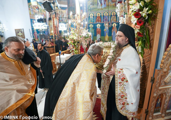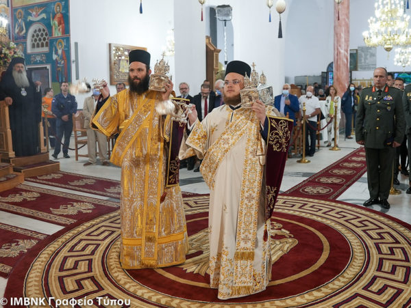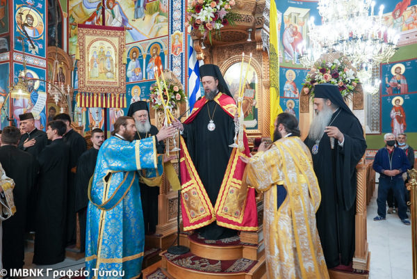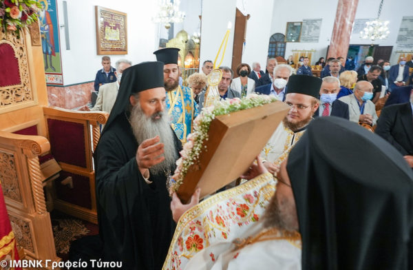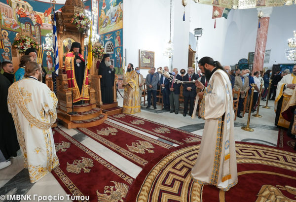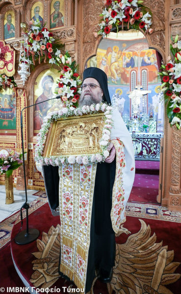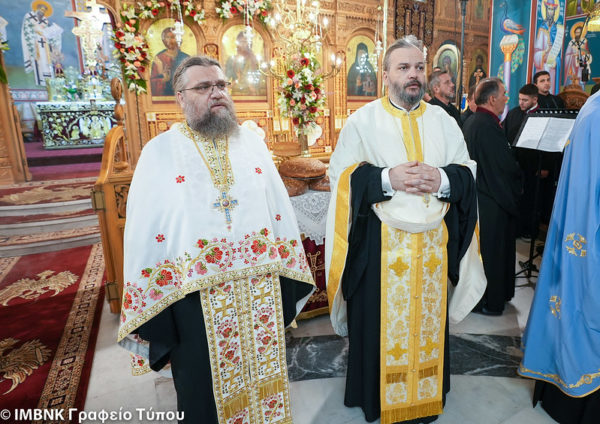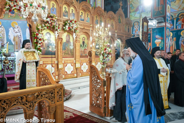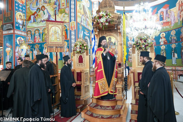 Στον λαμπρό Πανηγυρικό Πολυαρχιερατικό Εσπερινό χοροστάτησε ο Αρχιγραμματέας της Ιεράς Συνόδου της Εκκλησίας της Ελλάδος, Θεοφιλέστατος Επίσκοπος Ωρεών κ. Φιλόθεος και συμμετείχαν οι Σεβασμιώτατοι Μητροπολίτες Χαλκίδος, Ιστιαίας και Βορείων Σποράδων κ. Χρυσόστομος, Σταγών και Μετεώρων κ. Θεόκλητος, Φθιώτιδος κ. Συμεών, ο οποίος κήρυξε και τον θείο λόγο και ο Ποιμενάρχης, Σεβασμιώτατος Μητροπολίτης Βεροίας, Ναούσης και Καμπανίας κ. Παντελεήμων.