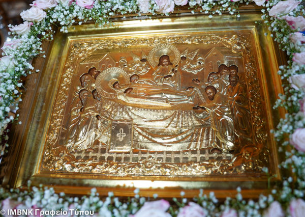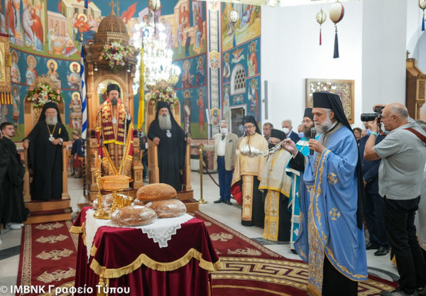 Καί μπορεῖ αὔριο νά διερωτηθοῦ­με καί ἐμεῖς μαζί μέ τόν ἱερό ὑμνο­γράφο «πῶς ἡ Παρθένος ἀπαίρει ἀπό τῆς γῆς εἰς τά ἄνω», ἀλλά δέν ἔχουμε καμία ἀπολύτως ἀμφιβο­λία ὅτι ἡ Ὑπεραγία Θεοτόκος εὑρί­σκεται ἐδῶ, ἀνάμεσά μας, ἀνάμεσα στά εὐλαβῆ καί πιστά τέκνα της, τά ὁποῖα ἔσπευσαν ἀπόψε σέ ὅλα τά ἱερά Προσκυνήματά της γιά νά τήν ὑμνήσουν καί νά τήν τιμήσουν. Εἶναι καί ἐδῶ, ἀνάμεσα σέ ὅλους ἐμᾶς, πού τηρώντας τίς παραδόσεις καί τά ἔθιμα τῶν πατέρων μας ἤλθαμε γιά νά καταθέσουμε τήν εὐγνωμοσύνη καί τήν ἀγάπη μας στήν Παναγία μητέρα μας, τήν πρόσφυγα Παναγία, ἡ ὁποία στά 100 χρόνια πού πέρασαν ἀπό τίς ἡμέρες τοῦ ἄδικου καί βάρβαρου ξεριζωμοῦ τῶν πατέρων καί τῶν μητέρων μας ἀπό τή Μικρά Ἀσία, τόν Πόντο, τήν Καππαδοκία, τήν Ἀνατολική Θράκη, δέν μᾶς ἐγκατέ­λειψε ποτέ. Παρά τίς δυσκολίες, παρά τά προβλήματα, παρά τίς τα­λαι­πωρίες καί τίς κακουχίες πού ὑπέ­στησαν οἱ πρόγονοί μας, μπόρε­σαν νά σταθοῦν καί πάλι ὄρθιοι, χάρη στή βοήθεια τῆς Παναγίας μας, μπόρεσαν νά διατηρήσουν τήν πίστη τους, τίς παραδόσεις τους, τόν πολιτισμό τους, τήν ἱστορία τους, τίς ἀναμνήσεις τῶν προγό­νων τους καί τῶν ἀλησμόνητων πατρίδων τους, καί νά καταφεύ­γουν πάντοτε μέ πίστη καί εὐ­γνωμοσύνη στήν Παναγία μητέρα μας, τήν Ὑπεραγία Θεοτόκο, τήν προστάτιδα καί φρουρό τῆς ζωῆς μας.