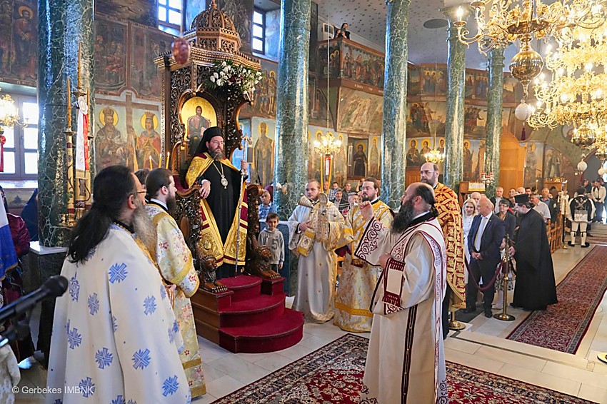 Στον εσπερινό χοροστάτησε ο Σεβασμιώτατος Μητροπολίτης Πολυανής και Κιλκισίου κ. Βαρθολομαίος, συγχοροστατούντων του Παναγιωτάτου Μητροπολίτου Θεσσαλονίκης κ. Φιλοθέου και του Σεβασμιωτάτου Μητροπολίτου Βεροίας, Ναούσης και Καμπανίας κ. Παντελεήμονος.