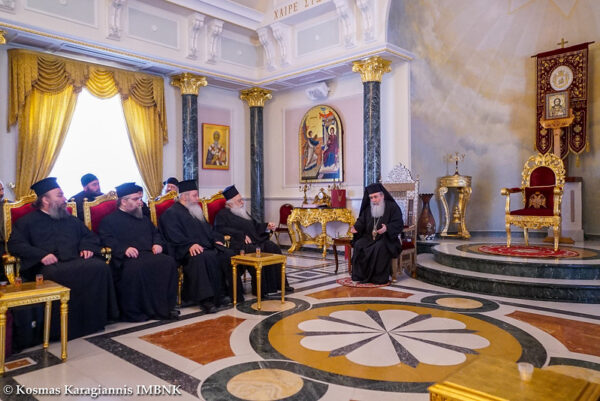 Την Δευτέρα 17 Φεβρουαρίου το πρωί ο Σεβασμιώτατος και οι προσκυνητές έγιναν δεκτοί από τον Μακαριώτατο Πατριάρχη Ιεροσολύμων κ. Θεόφιλο, ο οποίος τους υποδέχθηκε στην μεγάλη αίθουσα του Πατριαρχείου και απηύθυνε πατρικούς λόγους, ενώ ο Σεβασμιώτατος προσέφερε στον Μακαριώτατο την τρίτομη χαριστήρια έκδοση με τίτλο: «Μυριώνυμον Εύχος» που εκδόθηκε και παρουσιάστηκε προσφάτως στη Βέροια με αφορμή την επέτειο του Χρυσού Ιωβηλαίου Ιερωσύνης και του Αργυρού Ιωβηλαίου Αρχιερωσύνης του.
