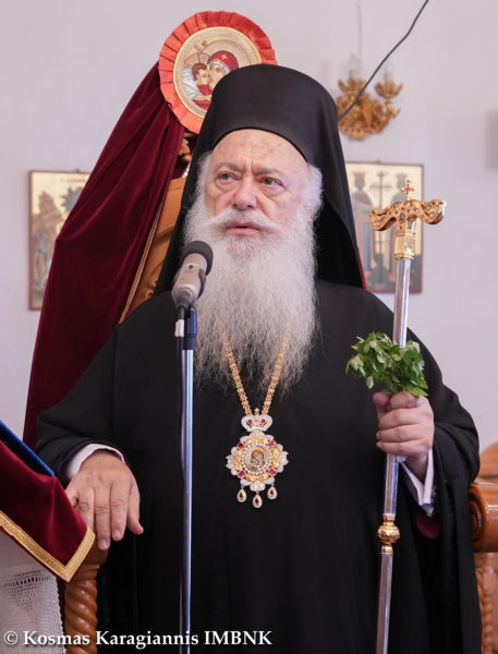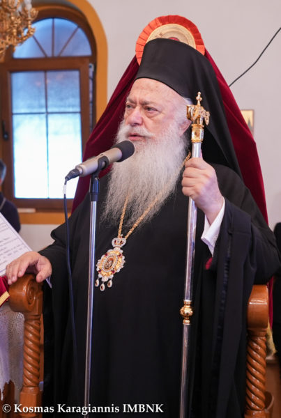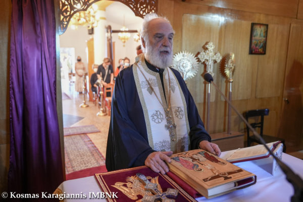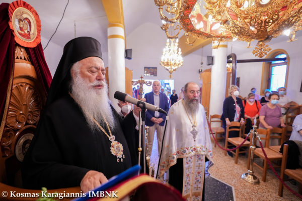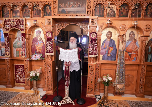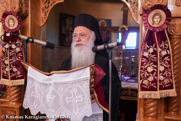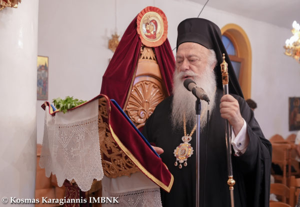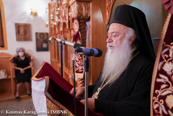 Κηρύττοντας τον θείο λόγο ο Σεβασμιώτατος απηύθυνε κάλεσμα προς το εκκλησίασμα να πλησιάσει και να επιδιώξει να είναι κοντά στην Παναγία τόσο σωματικά όσο και ψυχικά.