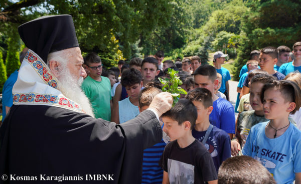 Μετά την τέλεση του Αγιασμού, ο Σεβασμιώτατος κ. Παντελεήμων, ευλόγησε την τράπεζα και μίλησε πατρικά στα παιδιά, τονίζοντας την ευκαιρία που τους δίδει η τοπική μας Εκκλησία να γνωρίσουν τις αλήθειες της πίστεως μας, να αποκτήσουν εμπειρία κοινοτικής ζωής και φιλίες, να εξασκηθούν σωματικά και να ωφεληθούν πνευματικά κάτω από τη σκέπη της Παναγίας Δοβρά.