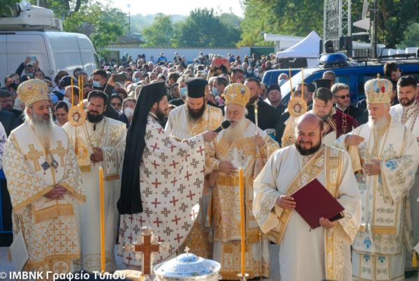 Καί εἶναι ἡ ἰδιαίτερη καί ἡ εὐλογία τήν ὁποία λάβαμε ὅλοι σήμερα, καθώς ἡ χάρη τοῦ Θεοῦ εἶναι πλεονάζουσα μέσα στόν καθαγιαζόμενο ναό καί εἶναι ζῶσα ἡ παρουσία τῶν ἁγίων μαρτύρων, τῶν ὁποίων τά ἱερά λείψανα ἐναπετέθησαν στήν Ἁγία Τράπεζα, ἀλλά καί τοῦ ἁγίου μεγαλομάρτυρος Δημητρίου τοῦ μυροβλύτου καί τῆς ἁγίας Μαρίας τῆς Μαγδαληνῆς καί μυροφόρου, τά ὁποῖα ἔχουμε ἐνώπιόν μας.