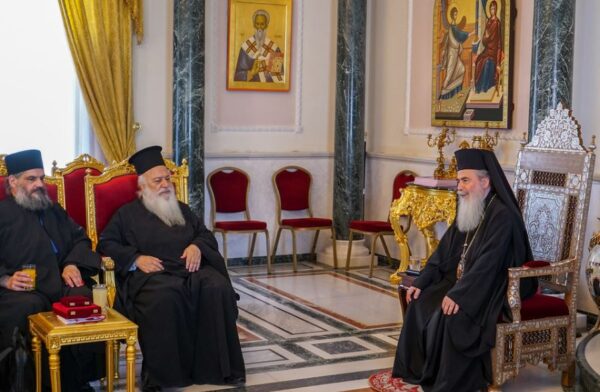 Την Πέμπτη 22 Αυγούστου το πρωί ο Σεβασμιώτατος και οι προσκυνητές έγιναν δεκτοί από τον Μακαριώτατο Πατριάρχη Ιεροσολύμων κ.κ. Θεόφιλο, ο οποίος τους υποδέχθηκε στην μεγάλη αίθουσα του Πατριαρχείου και απηύθυνε πατρικούς λόγους.
