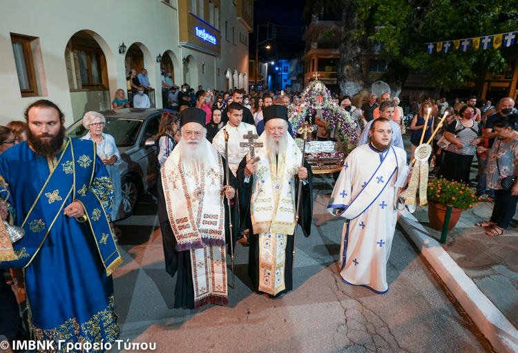 Ο Σεβασμιώτατος Μητροπολίτης μας κ. Παντελεήμων κήρυξε τον θείο λόγο και εξέφρασε τις θερμές του ευχαριστίες προς τον Σεβασμιώτατο Μητροπολίτη Χαλκίδος κ. Χρυσόστομο, ο οποίος βρίσκεται αυτές τις ημέρες στην Ιερά Μητρόπολη και συμμετέχει στις λατρευτικές εκδηλώσεις για τη θεομητορική εορτή της Κοιμήσεως της Υπεραγίας Θεοτόκου αναφέροντας μεταξύ άλλων: