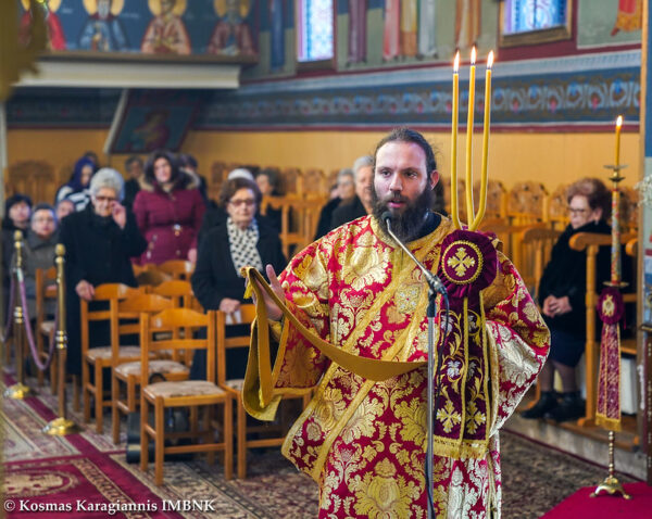 Στο τέλος της θείας λειτουργίας ο Σεβασμιώτατος τέλεσε αγιασμό και ανέγνωσε την ευχή του Αγίου Τρύφωνος για τους αγρούς.