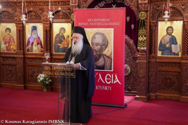 Στην αρχή της ημερίδας ο Σεβασμιώτατος Μητροπολίτης Βεροίας, Ναούσης και Καμπανίας κ. Παντελεήμων απηύθυνε χαιρετισμό και καλωσόρισε τον ομιλητή και τους Ιερείς.