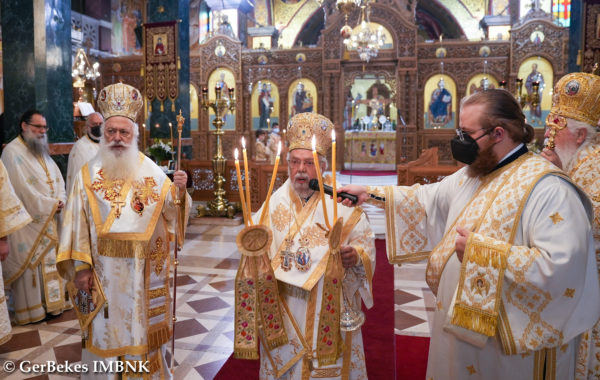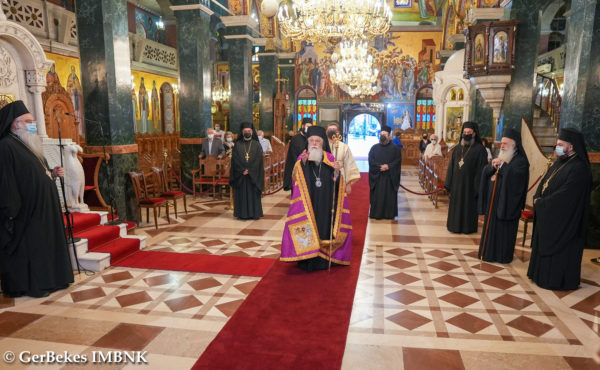 Σήμερα εἴχαμε τήν εὐλογία καί τήν τιμή νά ἔχουμε δύο ἀρχιερεῖς τοῦ κλίματος τοῦ Πατριαρχείου μας. Νά ἔχουμε προεξάρχοντα τόν πρεσβύτερο, τόν Νέστορα τῶν ἀρχιερέων τοῦ Οἰκουμενικοῦ μας Θρόνου, τόν Μητροπολίτη Βρυούλων Παντελεήμονα, ἀλλά καί τόν Μητροπολίτη Λαοδικείας Θεοδώρητο, οἱ ὁποῖοι εὑρισκόμενοι καί αὐτοί, ὅπως καί ἡ ἐλαχιστότης μου, στό Πατριαρχεῖο γιά μία Σύναξη, στήν ὁποία μᾶς συνεκάλεσε ὁ Οἰκουμενικός μας Πατριάρχης, εἶχαν τήν καλωσύνη νά δεχθοῦν τήν ταπεινή μου πρόσκληση, διότι γνώριζαν τόν ἀείμνηστο Μητροπολίτη Κινσάσας Νικηφόρο, νά εἶναι σήμερα μαζί μας, νά συμπροσευχηθοῦμε καί νά δεηθοῦμε στόν Κύριο νά τόν κατατάξει μετά τῶν ἁγίων καί τῶν δικαίων.