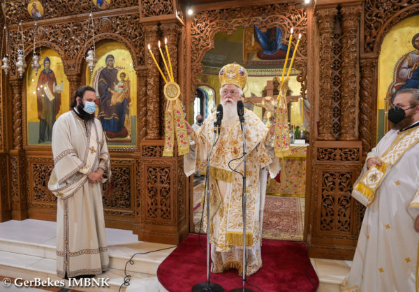 Καί στούς δύο ἐκφράζω τήν εὐγνωμοσύνη μου, ἀλλά καί τήν εὐγνωμοσύνη ὅλων, γιατί σήμερα μᾶς εὐλόγησαν, μᾶς ἁγίασαν καί μᾶς χάρισαν τήν εὐλογία καί τή χάρη τοῦ Θεοῦ. Ἄς ἔχουμε τήν εὐχή τους καί ἄς δέονται καί γιά τόν ταπεινό ἐπίσκοπο τῆς περιοχῆς καί γιά ὅλους σας. Ἀμήν.