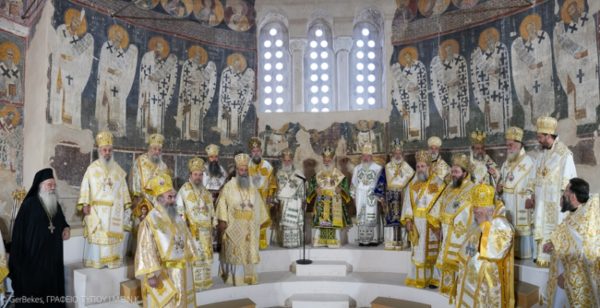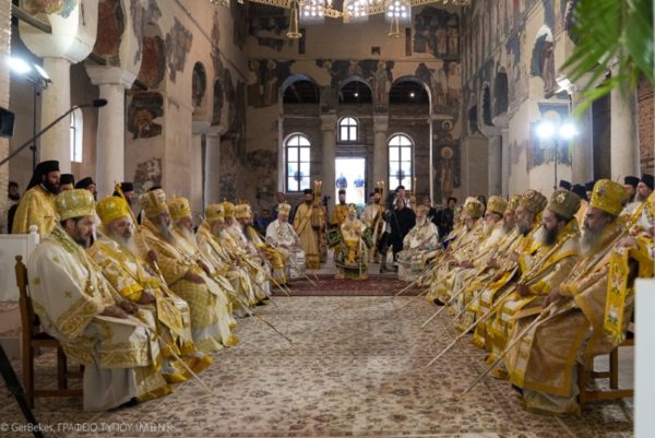 Στο Πολυαρχιερατικό Συλλείτουργο προεξήρχε ο Ποιμενάρχης μας, Σεβασμιώτατος Μητροπολίτης Βεροίας, Ναούσης και Καμπανίας κ. Παντελεήμων και συμμετείχαν οι Σεβασμιώτατοι Μητροπολίτες και οι Θεοφιλέστατοι Επίσκοποι: Κλούζ κ. Ανδρέας, Ξάνθης και Περιθεωρίου κ. Παντελεήμων, Σερρών και Νιγρίτης κ. Θεολόγος, ο οποίος χοροστάτησε στον όρθρο, Σιδηροκάστρου κ. Μακάριος, Αλεξανδρείας και Τελεορμάν κ. Γαλακτίων, Ειρηνουπόλεως κ. Δημήτριος, Σερβίων και Κοζάνης κ. Παύλος, Μεσσηνίας κ. Χρυσόστομος, Παροναξίας κ. Καλλίνικος, Άρτης κ. Καλλίνικος, Αμαντίας κ. Ναθαναήλ, Ιερισσού, Αγίου Όρους και Αρδαμερίου κ. Θεόκλητος, Κίτρους, Κατερίνης και Πλαταμώνος κ. Γεώργιος, Τρίκκης, Γαρδικίου και Πύλης κ. Χρυσόστομος, Λαγκαδά Λητής και Ρεντίτης κ. Πλάτων, Πολυανής και Κιλκισίου κ. Βαρθολομαίος, Λίμπλιαν κ. Δοσίθεος και Αμφιπόλεως κ. Χριστοφόρος.