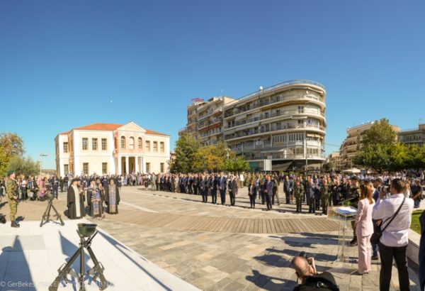 Ακολούθησε τρισάγιο και κατάθεση στεφάνων στο ηρώο της πόλεως και η στρατιωτική και μαθητική παρέλαση στην οδό Μητροπόλεως.