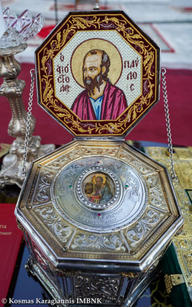 Ιδιαιτέρως όμως ευχαριστώ εκ βάθους καρδίας τους Σεβασμιωτάτους Αγίους Αρχιερείς, τους συμμετέχοντες στον αποψινό μεθέορτο πανηγυρικό Εσπερινό, που τιμούν με την παρουσία τους, και παρά τα προβλήματα τα οποία ανέκυψαν, τις λατρευτικές εκδηλωσεις του μεγίστου εν αποστόλοις αποστόλου Παύλου.