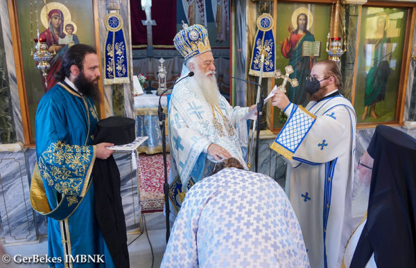 Στο τέλος της Θείας Λειτουργίας ο Σεβασμιώτατος Μητροπολίτης κ. Παντελεήμων χειροθέτησε Αρχιμανδρίτη τον εφημέριο του Ιερού Ναού π. Θεόδωρο Αναγνώστου.