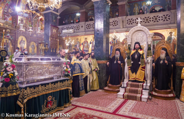 Στη συνέχεια, τηρουμένων των προβλεπόμενων υγιεινομικών μέτρων, τελέστηκε ο Πανηγυρικός Πολυαρχιερατικός Εσπερινός της εορτής χοροστατούντος και ομιλούντος του Σεβασμιωτάτου Μητροπολίτου Πολυανής και Κιλκισίου κ. Βαρθολομαίου, ενώ έλαβαν μέρος ο Σεβασμιώτατος Μητροπολίτης Λαγκαδά, Λητής και Ρεντίνης κ. Πλάτων και ο Σεβασμιώτατος Μητροπολίτης Βεροίας, Ναούσης και Καμπανίας κ. Παντελεήμων, ο οποίος εξέφρασε τις θερμές ευχαριστίες προς τους Αγίους Αρχιερείς που λαμπρύνουν με την παρουσία τους την Ιερά Πανήγυρη.