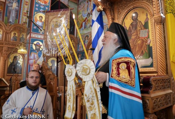 Ο Σεβασμιώτατος στην ομιλία του ανέφερε μεταξύ άλλων: Με την ίδια πίστη και την ίδια βεβαιότητα στρεφόμεθα και εμείς προς το σεπτό και ιερώτατο πρόσωπο της Υπεραγίας Θεοτόκου, το οποίο ο θεοκίνητος χρωστήρας του ευαγγελιστού Λουκά αποτύπωσε με μοναδικό τρόπο, και την παρακαλούμε και την ικετεύουμε και της εμπιστευόμεθα τις ανησυχίες μας και τις μέριμνές μας.Ιδιαιτέρως φέτος, που συμπληρωνονται εκατό χρόνια από τη θλιβερή επέτειο της Μικρασιατικης καταστροφής, και σύσσωμος ο Ελληνισμός τιμά τη μνήμη των χιλιάδων αθώων θυμάτων και του αφανισμού ενός ολόκληρου πολιτισμού, τον οποίο δημιούργησε το ελληνικό πνεύμα και η χριστιανικη πίστη· ιδιαιτέρως φέτος, που ανόσιες διεκδικήσεις εγείρονται και προωθούνται με ασύστολο θράσος και ψευδή επιχειρήματα, ενώ συγχρόνως βεβηλώνονται τα ιερά του Γένους μας και μνημεία της παγκόσμιας πολιτιστικής κληρονομιάς από κάποιους που με προκλητικό τρόπο τα σφετερίζονται και τα χρησιμοποιούν καταχρηστικά, προκειμένου οι εμπνευστές τους να κάνουν επίδειξη ισχύος με θρησκευτικά δήθεν φληναφήματα, εμείς προστρέχουμε με ακόμη μεγαλύτερη θέρμη και ακράδαντη πίστη στην Κυρία Θεοτόκο, την πρόσφυγα, τη Σουμελιώτισσα”.