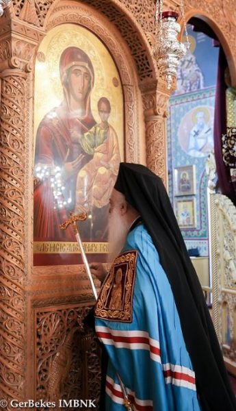 Μέ τήν ἴδια πίστη καί τήν ἴδια βεβαιότητα στρεφόμεθα καί ἐμεῖς πρός τό σεπτό καί ἱερώτατο πρόσωπο τῆς Ὑπεραγίας Θεοτόκου, τό ὁποῖο ὁ θεοκίνητος χρωστήρας τοῦ εὐαγγελιστοῦ Λουκᾶ ἀποτύπωσε μέ μοναδικό τρόπο, καί τήν παρακαλοῦμε καί τήν ἱκετεύουμε καί τῆς ἐμπιστευόμεθα τίς ἀνησυχίες μας καί τίς μέριμνές μας.