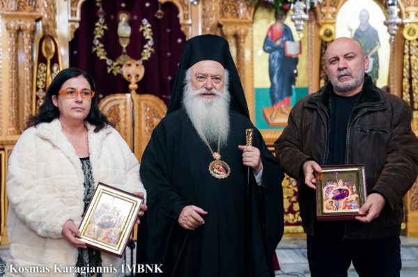 Ἀπόψε ἔχουμε τή μεγάλη χαρά καί εὐλογία νά ἔχουμε κοντά μας τόν Σεβασμιώτατο Μητροπολίτη Πατρῶν κ. Χρυσόστομο, ὁ ὁποῖος, ἀνταποκρινόμενος στήν παράκλησή μου, χοροστάτησε προηγουμένως στόν Ἑσπερινό καί εἶναι ἐδῶ, καί στήν ἀποψινή ἑόρτιο ἐκδήλωση, γιά νά σᾶς δώσει καί ἐκεῖνος τίς εὐχές του καί τήν εὐλογία του.
