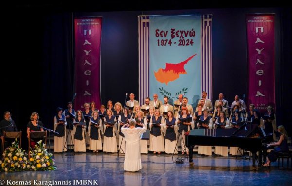 «Χαῖρε Κύπρος ἀδούλωτη», τραγούδησε ἀπόψε μεταξύ ἄλλων τραγουδιῶν πού ἀναφέρονται καί σχετίζονται μέ τήν Κύπρο ἡ χορωδία μας, ἡ διεθνοῦς φήμης Δημοτική Χορωδία Τρικάλων, γιά νά τιμήσουμε τή Μεγαλόνησο ἀλλά καί γιά νά θυμηθοῦμε τό δράμα τῆς διχοτομήσεως πού ζεῖ ἐπί πενήντα χρόνια ἐξαιτίας τῆς τουρκικῆς εἰσβολῆς.