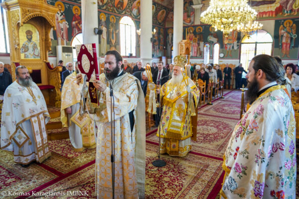 Στο τέλος της Θείας Λειτουργίας ο Σεβασμιώτατος χειροθέτησε σε Οικονόμο τον εφημέριο της ενορίας π. Κωνσταντίνο Νικολαΐδη.